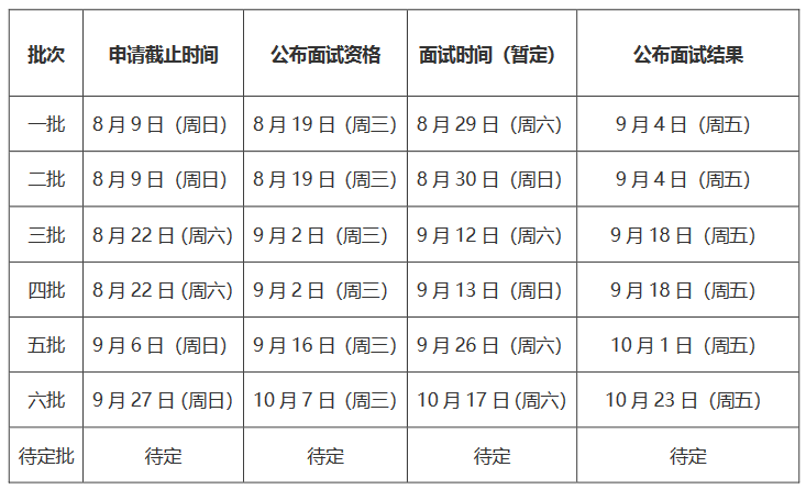 1、在線申請報滿為止;安排如有變動,請以后續通知為準;面試形式另行通知;