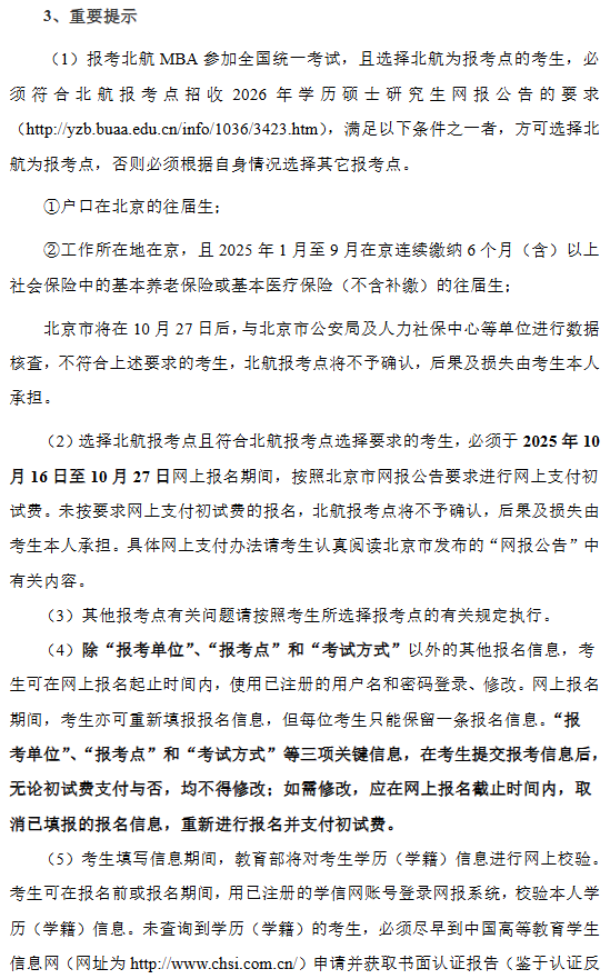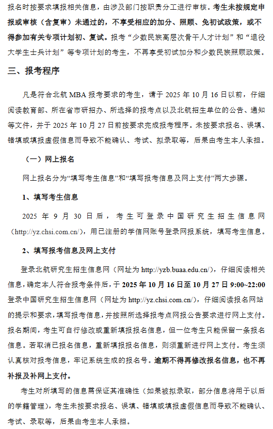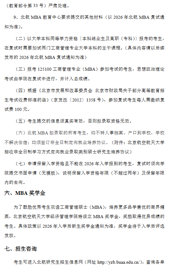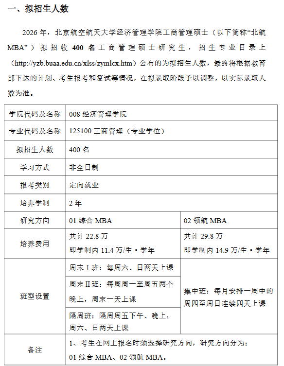 2026 年,北京航空航天大學經濟管理學院工商管理碩士(以下稱“北航MBA”)擬招收400名工商管理碩士研究生,招生專業目錄上(http://yzb.buaa.edu.cn/xlss/zymmlcx.htm)公布的為擬招生人數,最終將根據教育部下達的計劃、考生報考和復試等情況,在擬錄取階段予以調整,以實際錄取人數為準。